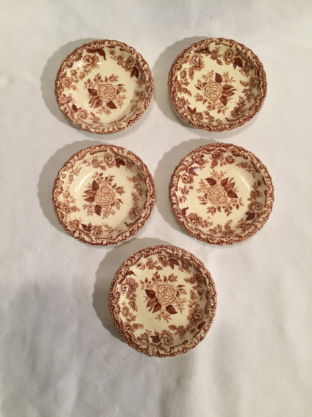 Vintage Spode Copeland Royal Jasmine Marina Butter Pats Coasters Set of 5 Brown