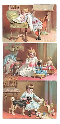 LOT: 3 ANTIQUE TRADE CARDS CLARK'S SPOOL COTTON GIRLS TOYS DOLLS DOG DRAWING