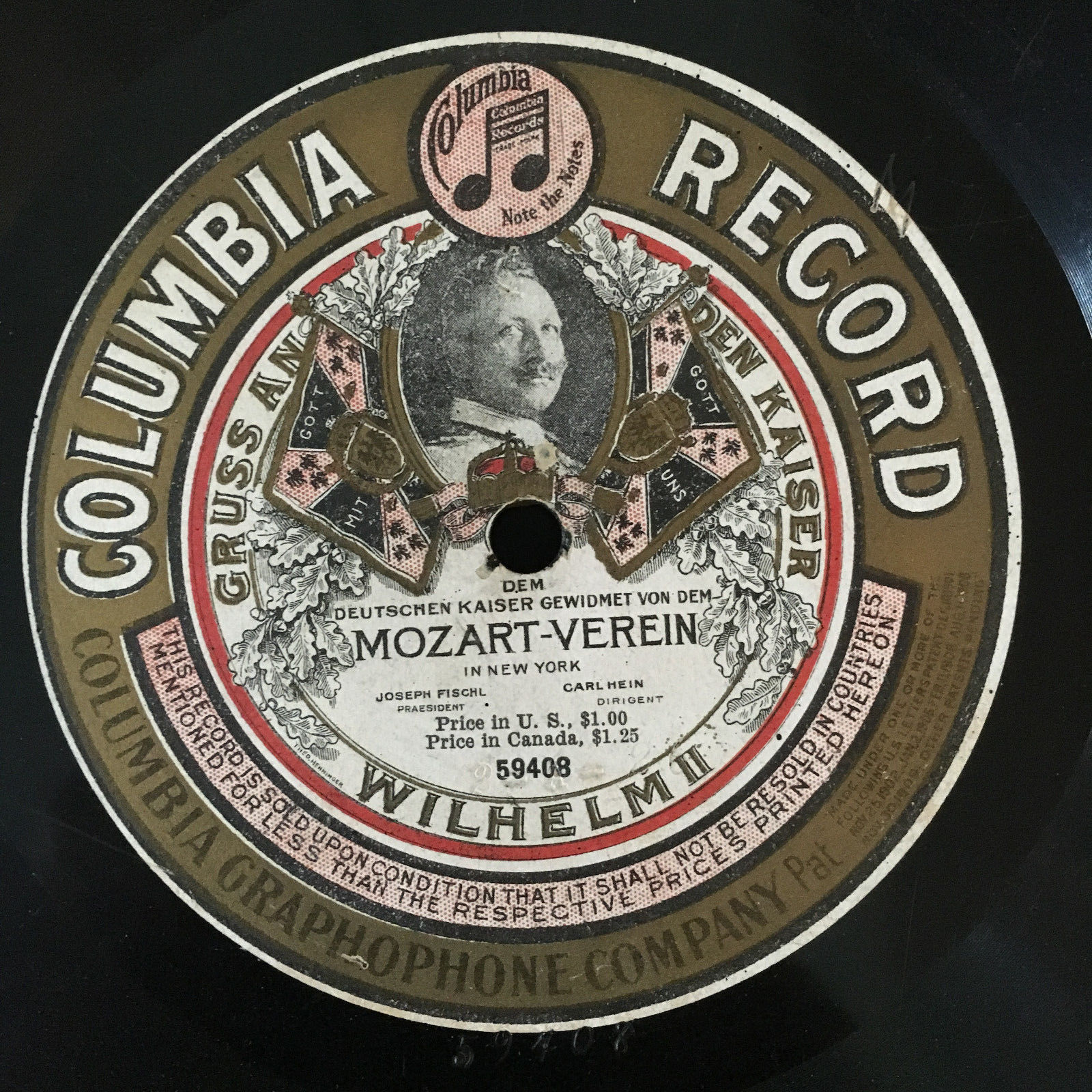 Title (ebay affiliate link): Columbia 59408 KAISER WILHELM II label "Mozart-Verein" circa 1914 78 rpm E