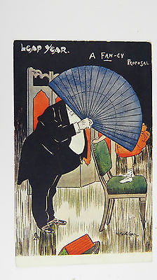 Title (ebay affiliate link): 1910s Vintage Tuck Postcard Arthur Gill Leap Year Proposal Folding Opera Fan