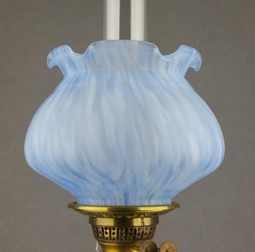Blue Spatter Art Glass Duplex Kerosene Paraffin Electric Oil Lamp Tulip Shade