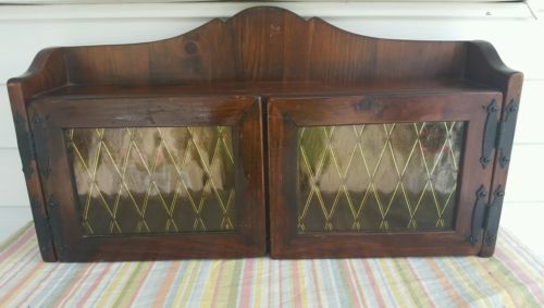 Title (ebay affiliate link): Vintage antique walnut wood cupboard yellow embossed glass doors
