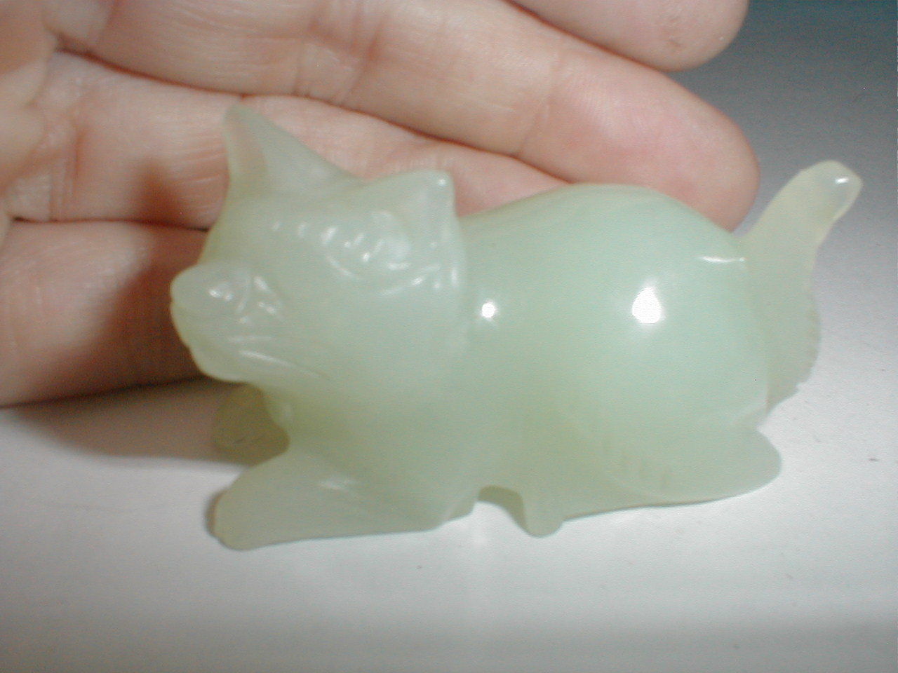 Title (ebay affiliate link): VINTAGE CARVED JADE GEMSTONE POUNCING CAT SCULPTURE HAND CARVED DETAIL NR