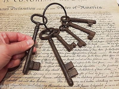 Antique Vintage Style Cast Iron Large Key ring of 6 keys