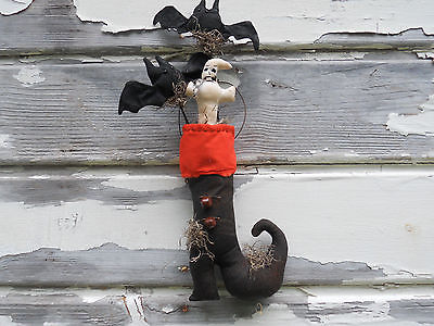 Primitive Halloween Witch Black Boot Ornie Door Hanger Peg Hanger Decor
