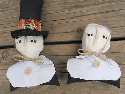 Primitive Fall Autumn Thanksgiving Pilgrim Ornies Bowl Fillers Decor Set Of 2