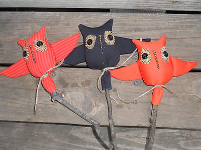 Primitive Halloween Black & Orange Owl Pokes Ornies Crock Fillers Decor Set Of 3