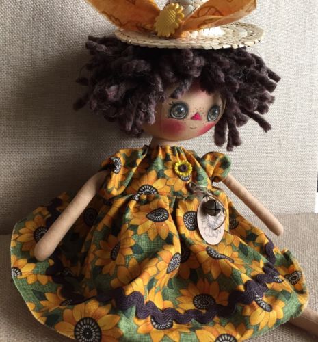 Title (ebay affiliate link): Primitive Sunflower Doll Folk Art Raggedy Fall Hat Hang Tag Ornie Rusty Pin Bell