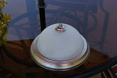Ceiling Light Fixture. twin 2 bulb brushed finish opaque milk glass