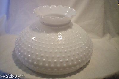 Title (ebay affiliate link): Large Vintage White Milk Glass Hobnail Hurricane Lamp Shade12" Fitter Ruffle Top