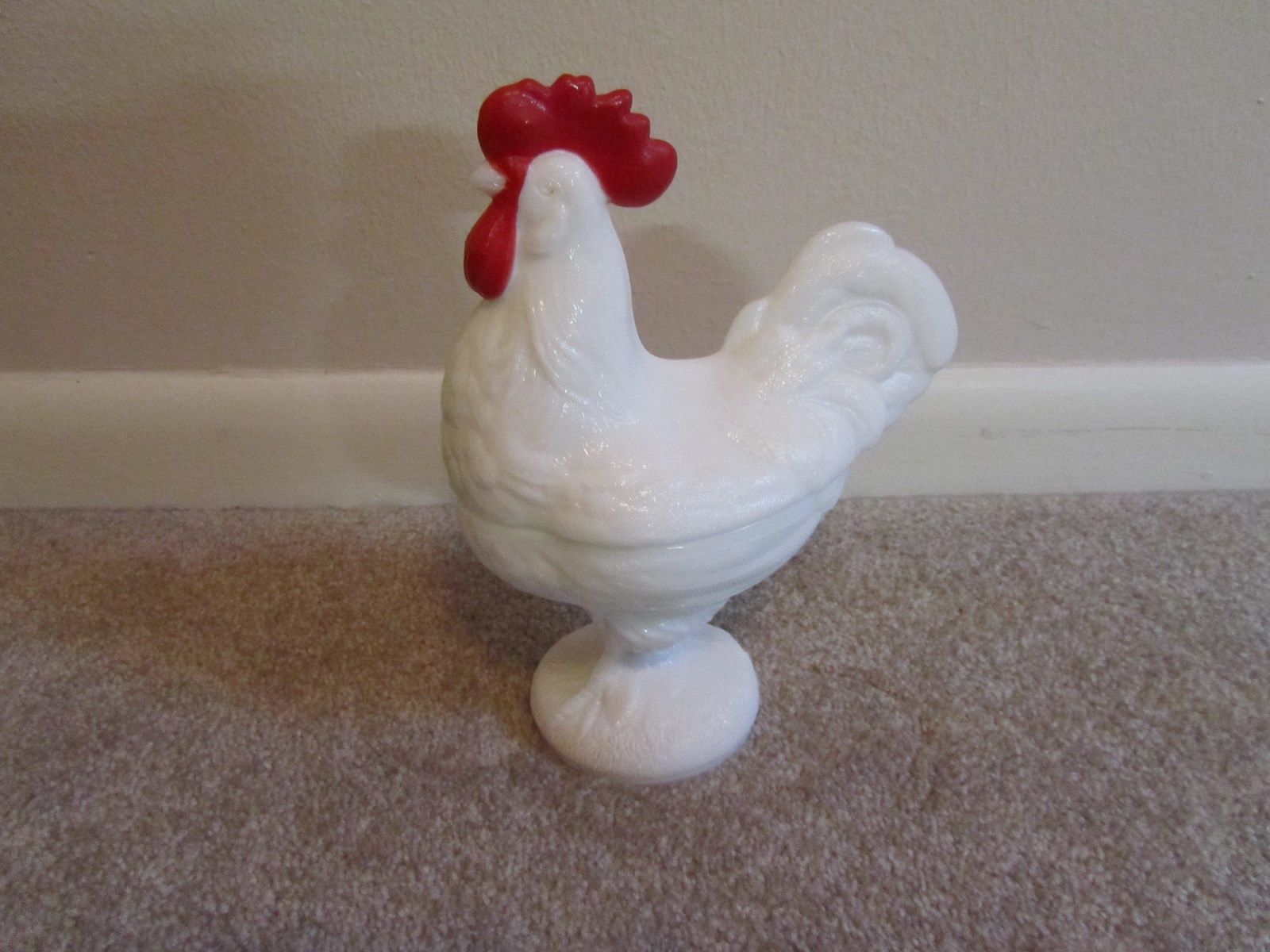 Title (ebay affiliate link): Vintage Westmoreland Milk Glass Standing Rooster Lidded Candy Dish