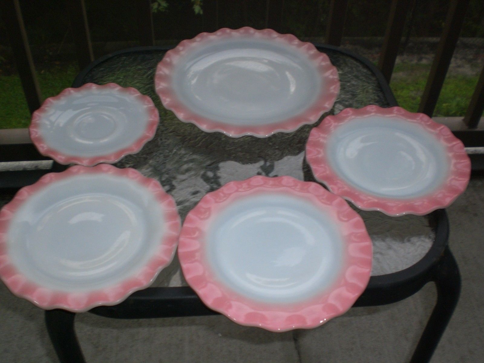 Title (ebay affiliate link): Vintage 50s Hazel Atlas Pink Crinoline Ruffle Milk Glass Luncheon Dinner Plates