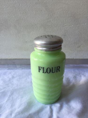 Vintage Green Milk Glass Jadeite Beehive Flour Shaker