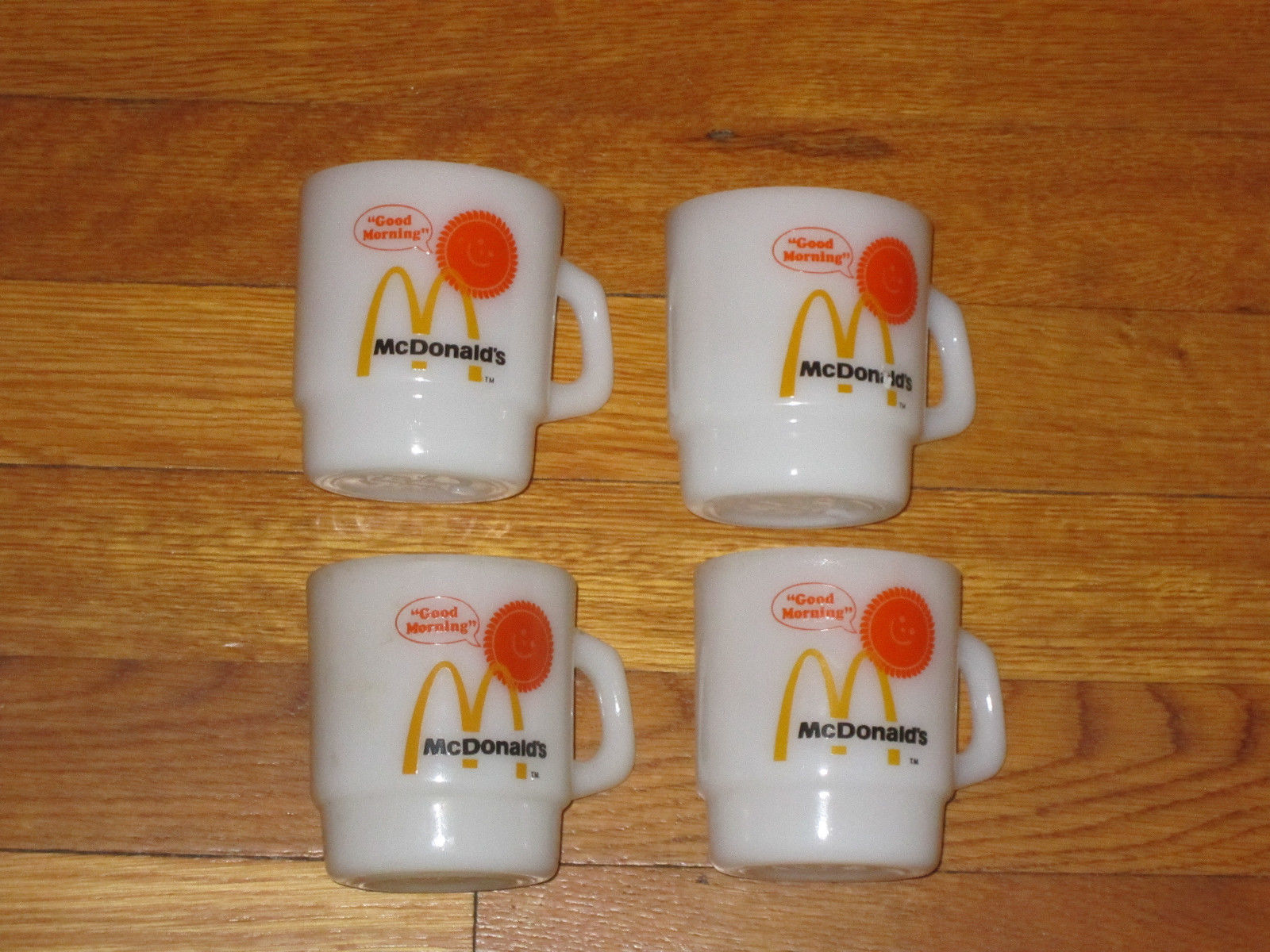 4-Vintage Anchor Hocking FIRE KING McDonald's Good Morning Mugs Milk Glass