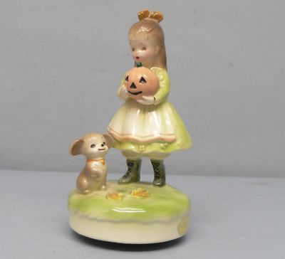 Title (ebay affiliate link): Josef Originals Girl Music Box w/ Jack O Lantern & Pup