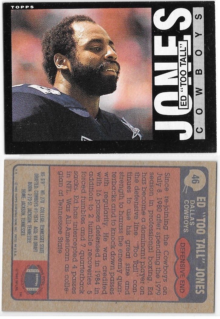 Title (ebay affiliate link): 1985 Topps Ed "Too Tall" Jones #46, Dallas Cowboys Football Card