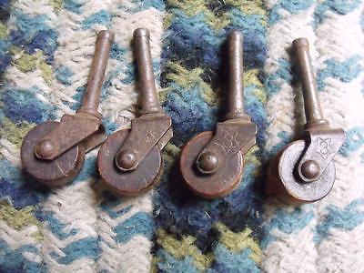 Set of 4 Antique Wood Caster Wheels #3 In Star Mark GREAT Patina
