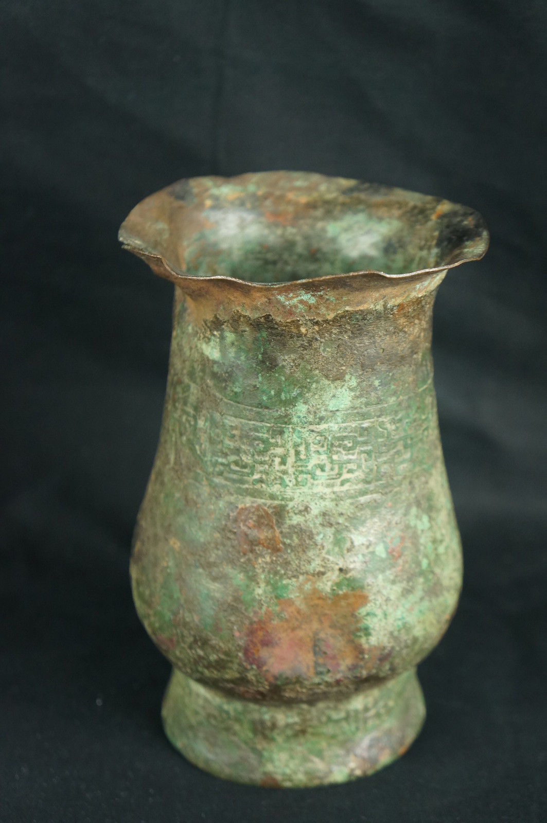 Great antique hammered copper / brass vase early 19th C. patina 6"