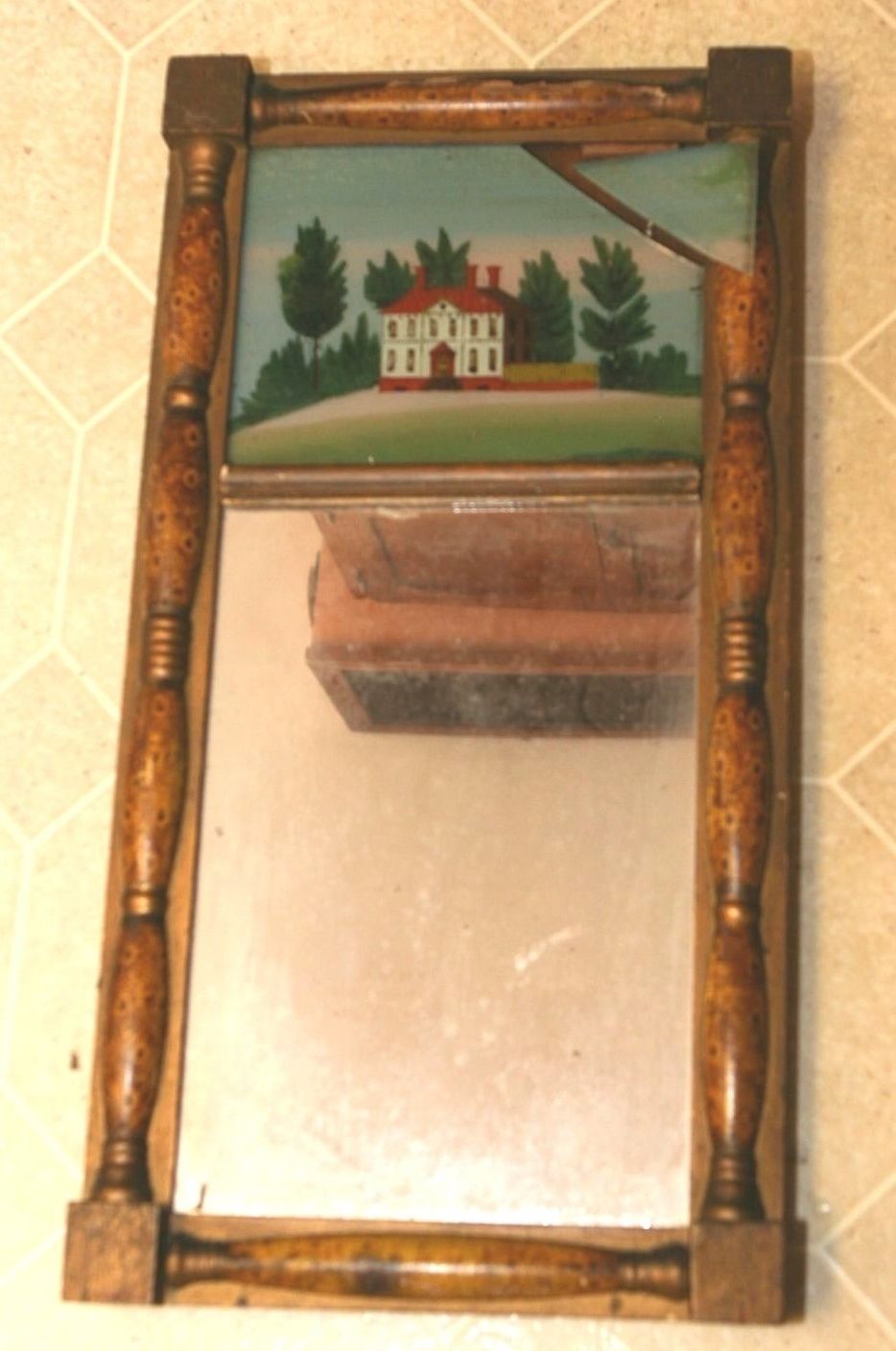 Title (ebay affiliate link): Antique Federal Folk Art Painted Reverse Painted Building Split Column Mirror
