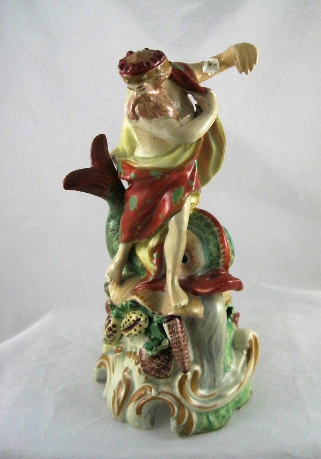 Antique Staffordshire Figurine Neptune & Fish Handpainted AS-IS