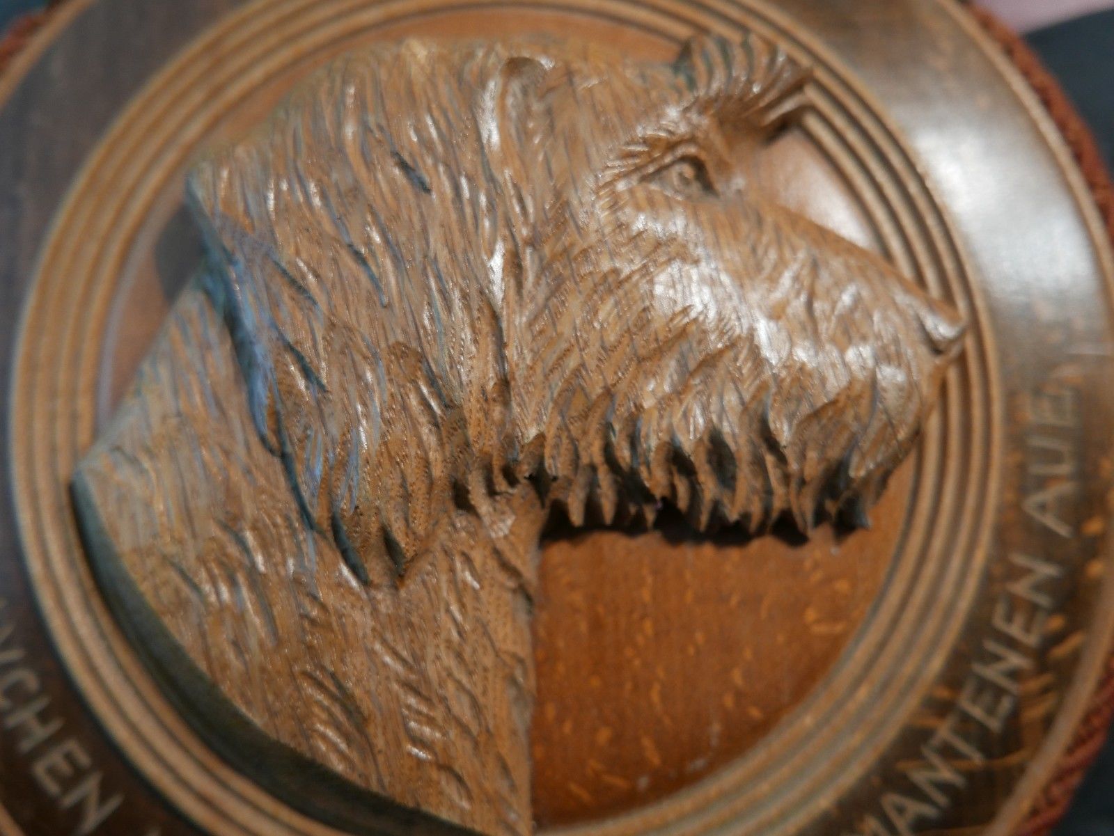 hand carved BLACK FOREST SCHNAUZER DOG wooden trophy prize NR