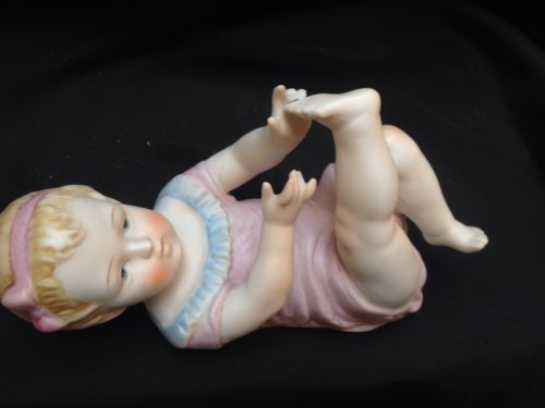 Antique Bisque Girl Figurine Piano Baby Laying 6" 8131