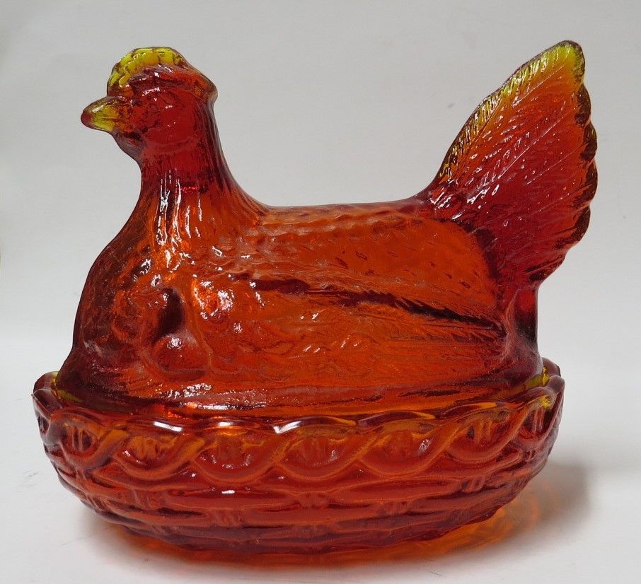Title (ebay affiliate link): Vintage Reddish/Orange Depression Glass Hen Candy Dish - 5 1/2" Height x 6" Wide