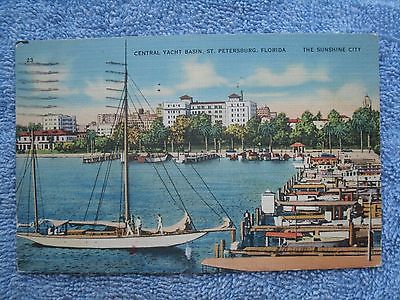 Postcard,Central Yacht Basin,Boat Slips,St. Petersburg,FL.,US.,Linen,Posted