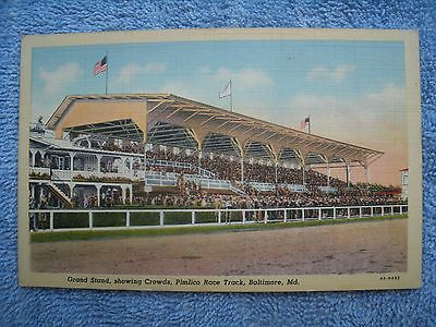Postcard,Grand Stand,Crowd,Pimlico Race Track,Baltimore,MD.,US.,Linen,Unposted