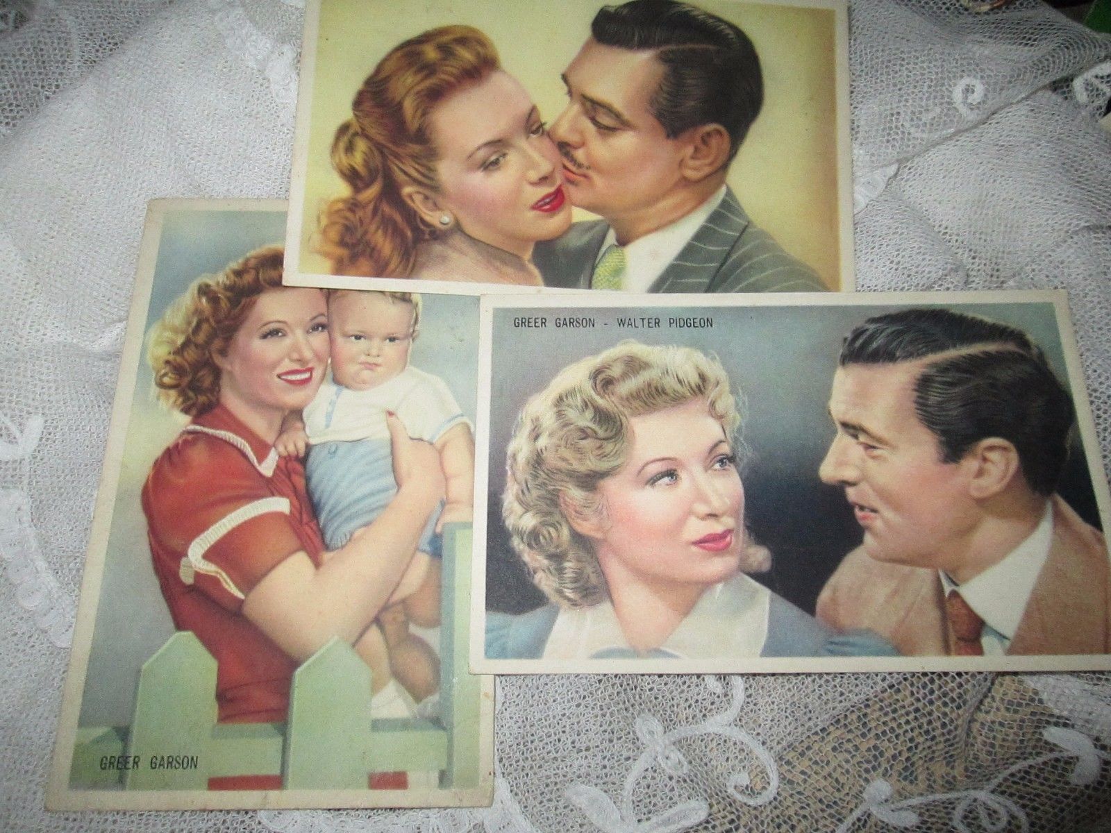 3 Beautiful old vintage cards movie stars-Clarck Gable-Greer Garson