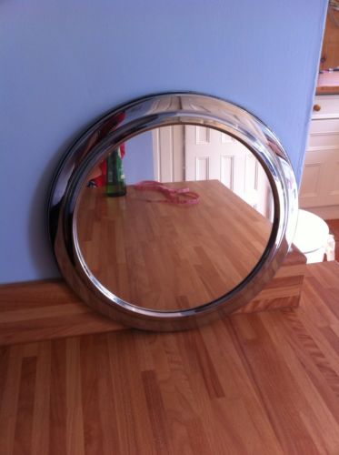 Title (ebay affiliate link): Vintage Chrome Metal Porthole Style Wall Mirror Wood Back Hanging Hook
