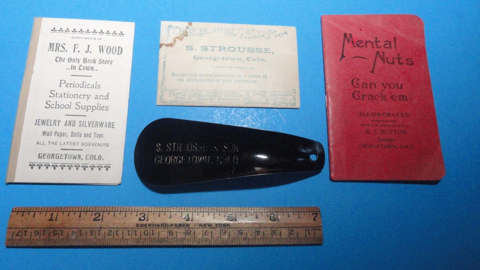 4 Georgetown, Colorado 1900's mining town merchants advertising sales giveaways.