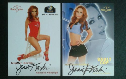 Title (ebay affiliate link): Jennifer Korbin 2011 Comic Con + 2012 Vault Cop Autograph 2 card lot