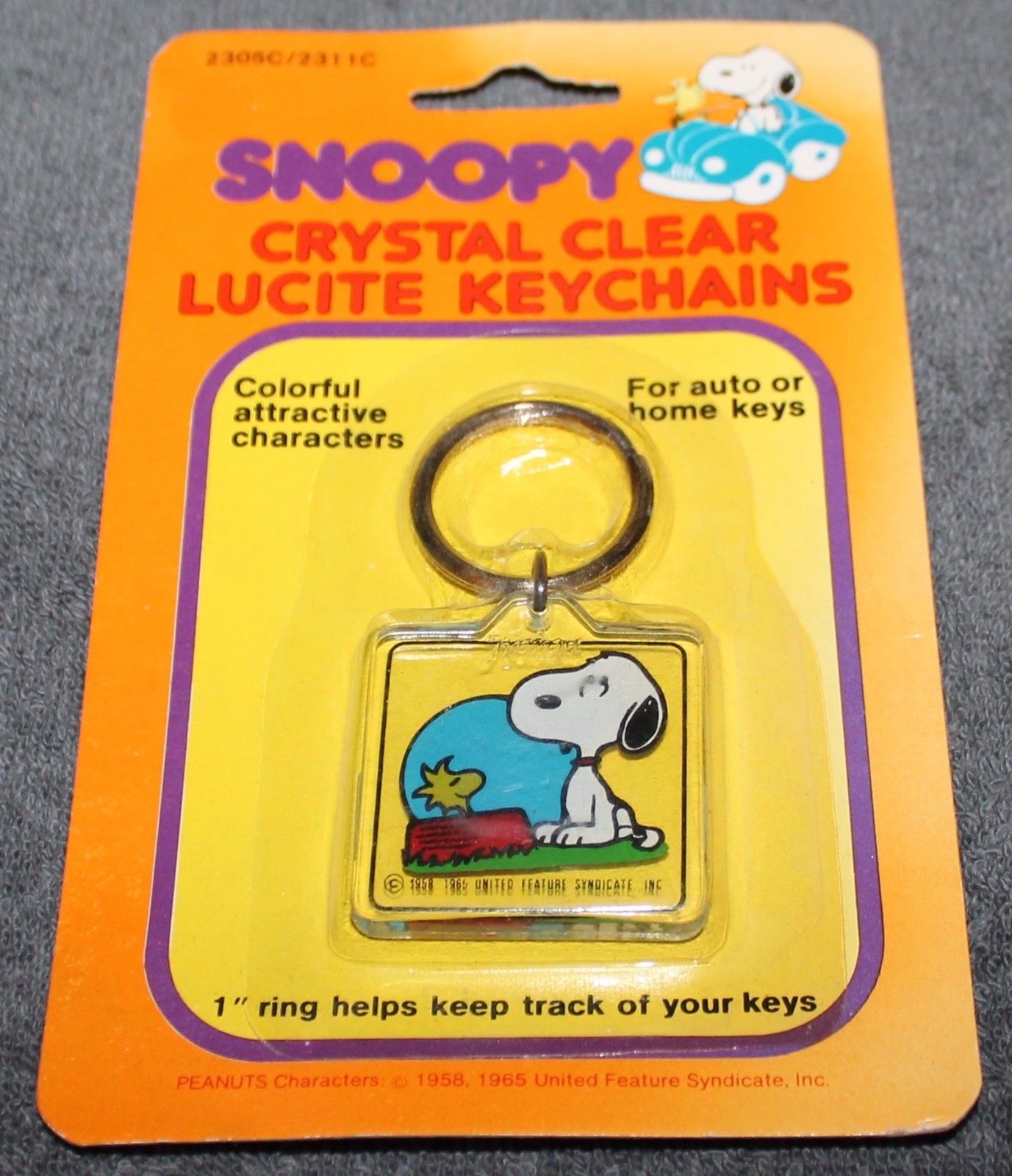 Title (ebay affiliate link): VINTAGE SNOOPY & WOODSTOCK LUCITE KEYCHAIN SEALED IN PACKAGE