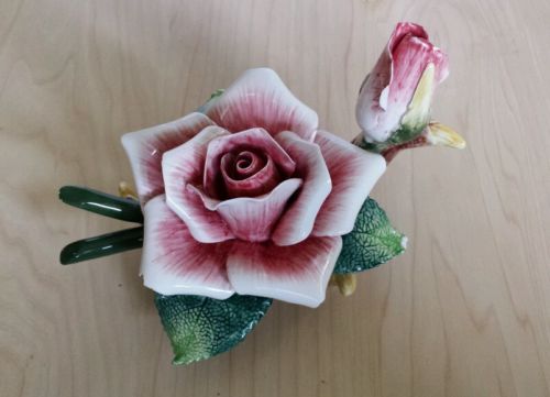 Vintage Capodimonte Pink Rose with Bud Spray Figurine