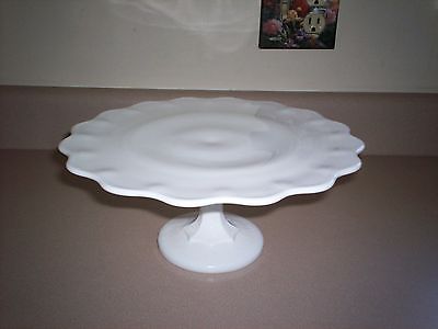 Vintage Milk Glass Scalloped White Pedestal Cake Stand