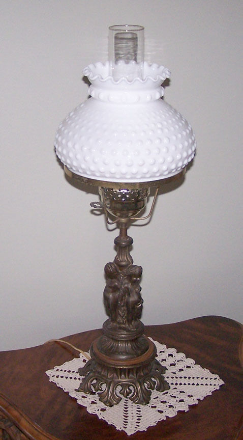 Title (ebay affiliate link): Vintage Metal Cherub Table Lamp w/Milk Glass Hobnail Shade