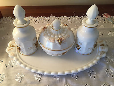 Westmoreland Milk Glass: Grape with Gold Vanity Set
