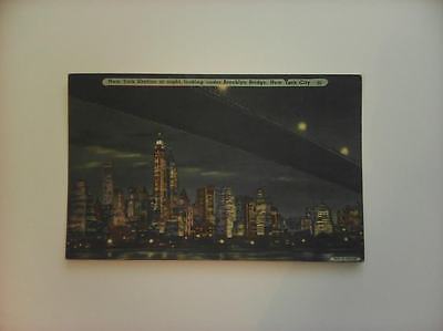 Vintage Postcard New York Skyline At Night Looking Under Brooklyn Bridge Posted