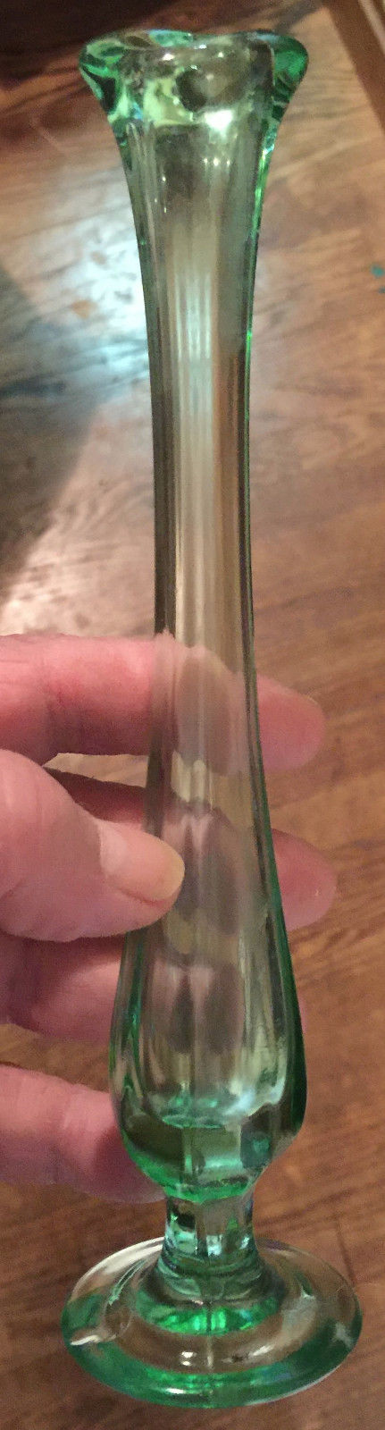 GREEN DEPRESSION VINTAGE 8 SIDED BUD VASE GLASS VASELINE ? ** BUD VASE ** 8 5/8"