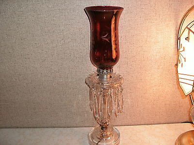 Bohemian Cranberry Glass Hurricane Lamp with Prisms