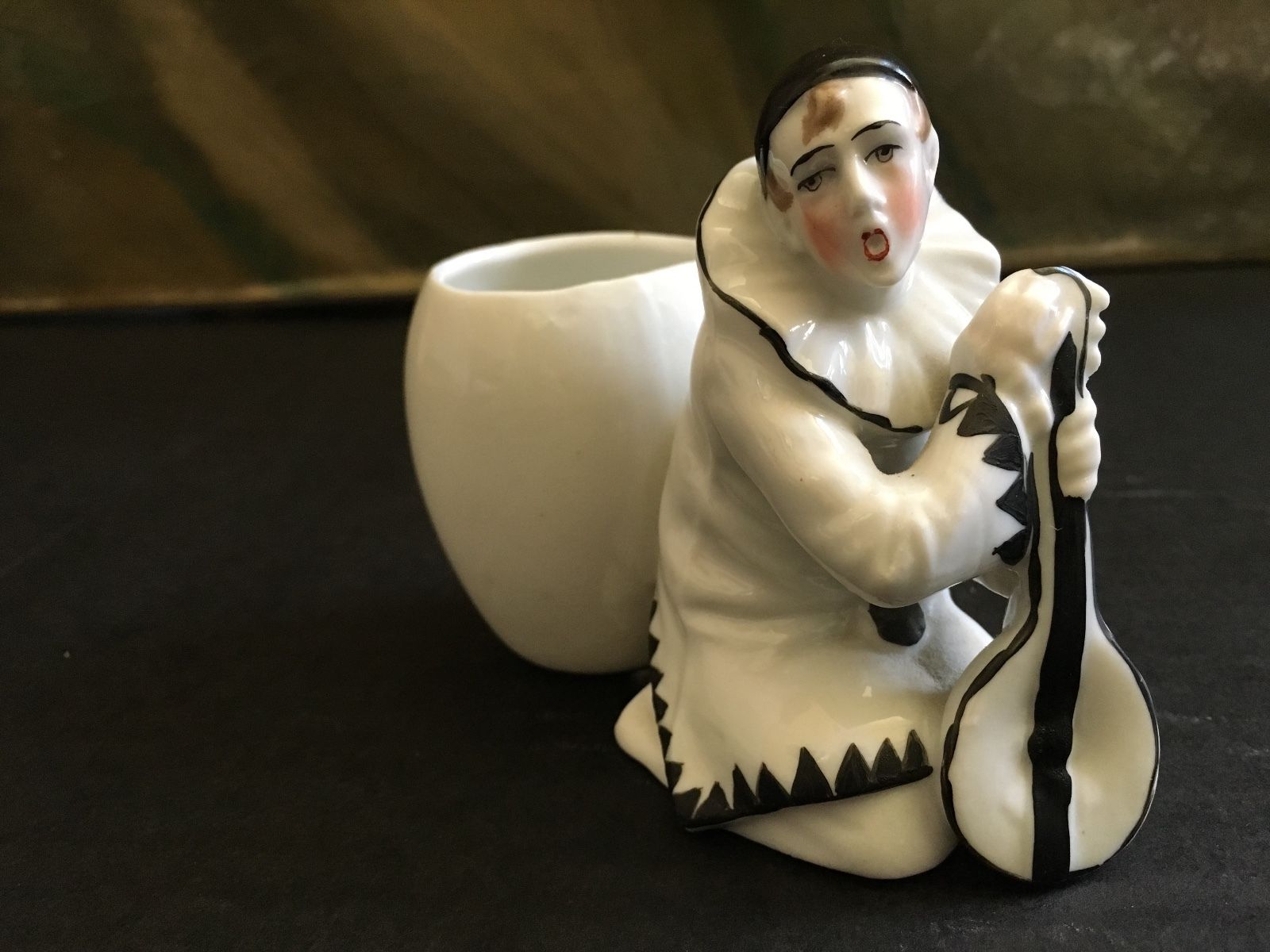Title (ebay affiliate link): Art Deco 1920's French Pierrot Singing Mandolin Flower Vase Hat Pin Holder AR70