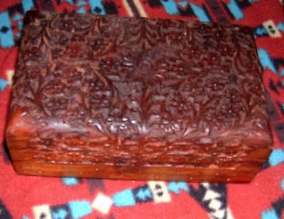 Vintage estate Heavily Hand Carved Teak wood Trinket/ Jewelry/ Stash box