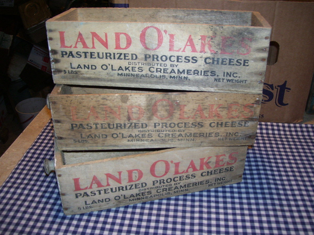 Lot of 3 Antique Vintage Wood Land O Lakes 5 Pound Cheese Boxes