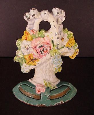 ANTIQUE HUBLEY? CAST IRON PAINTED DOORSTOP FRENCH FLOWER BASKET