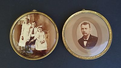 Pair of Victorian era circular brass photo frames w/ man&children