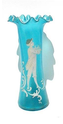 Antique Mary Gregory Hand Painted Blue Blown Glass Vase