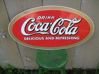 Title (ebay affiliate link): Vintage Coca-Cola 28" Embossed Metal Sign Oval