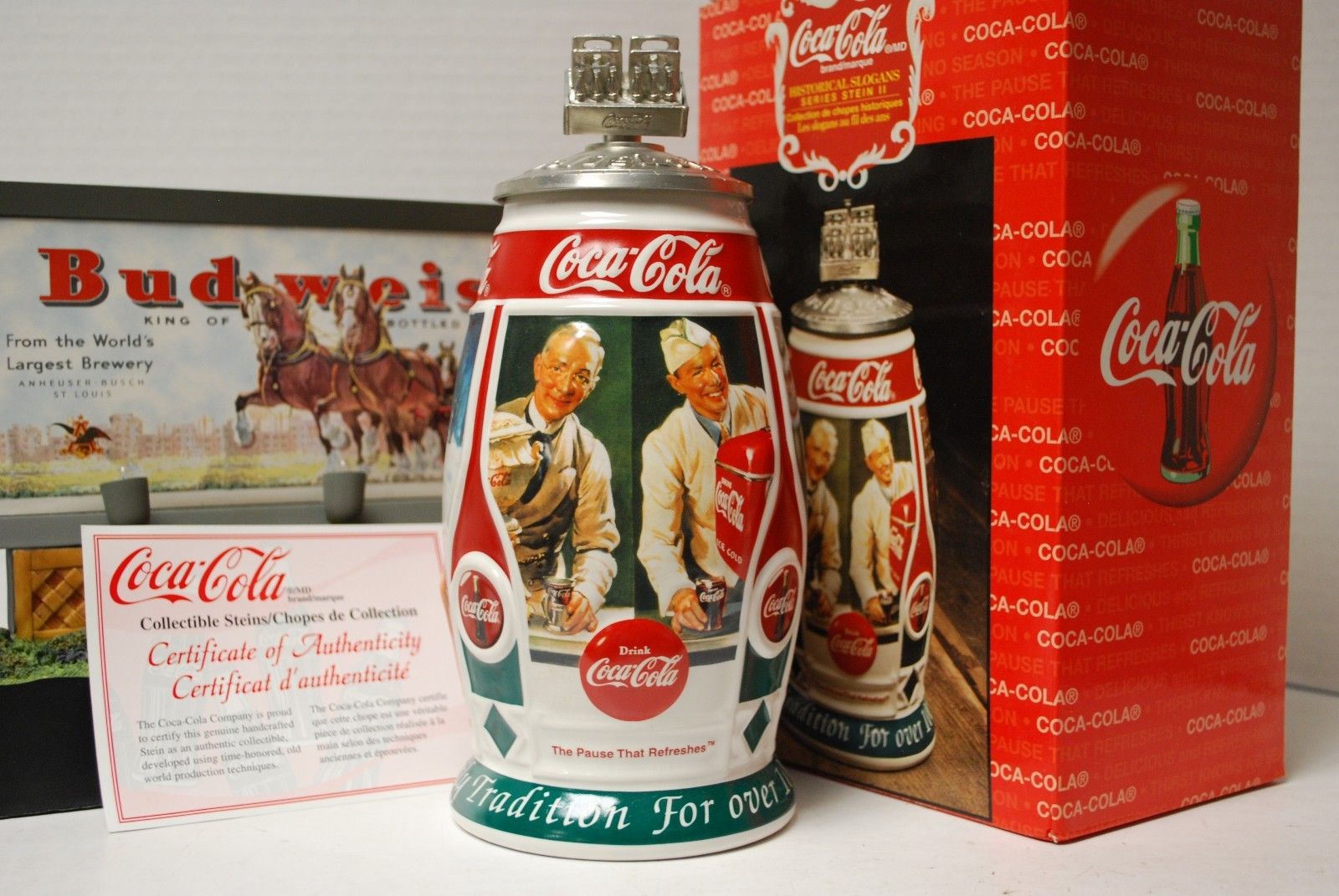 Title (ebay affiliate link): Coca Cola Historical Slogans Series II Lidded Holiday Stein CS451 Box/COA SJ 43F