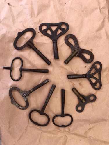 9 ANTIQUE MANTLE CLOCK KEYS FOR THE CLOCK MAKER